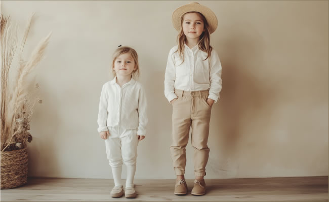 兒童上衣、褲子、套裝、連身裙、配件,以及部分貼身配件(如:貼頭帽款、髮飾、襪子等)。 -